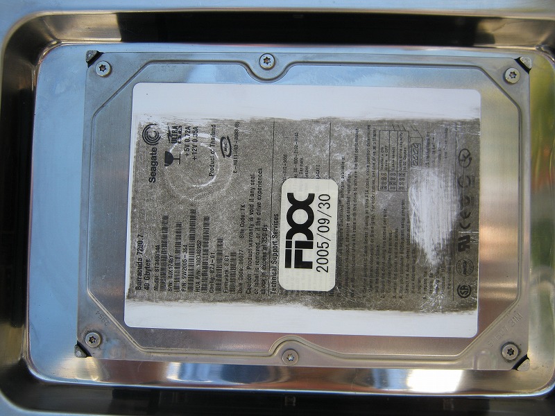 火災で焼けたパソコンから取り出した最初の状況のハードディスクです。